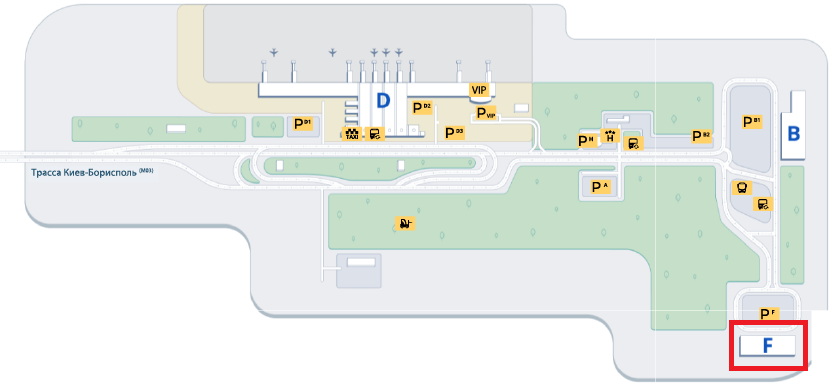 - Якщо ви приїхали на Kyiv Boryspil Express, найзручніше дістатися до терміналу “F” безкоштовним автобусом. Shuttle Bus відправляється з першого рівня терміналу D.