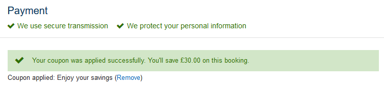Вуаля, знижка отримана! Головне – перед бронюванням перевіряйте вартість на офіційному сайті, так як ціни на Expredia дещо завищені, і реальна знижка становить менше 30 фунтів, але все одно виходить дуже чудова економія, діє по всіх містах Європи!