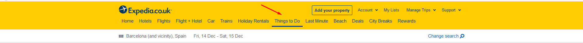 1) Переходимо на сайт Expedia і клікаємо Things to do.