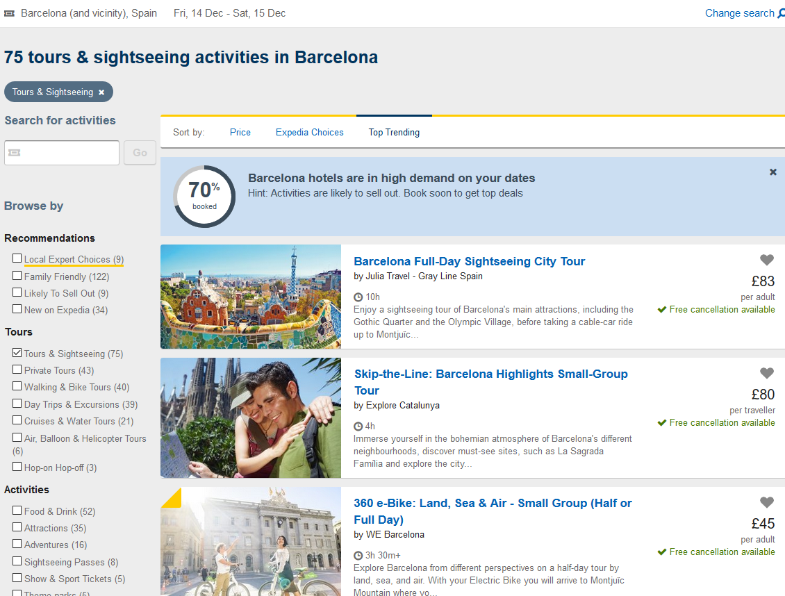 2) Вводимо в пошуку цільове місто, дату ( до кінця 2018 року) та вибираємо цікаву для нас активність.