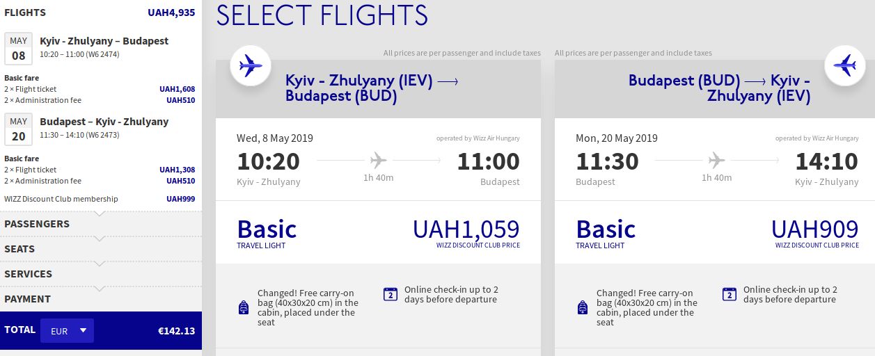 – Київ- Будапешт-Київ 8 Травня-20 Травня 142 Євро ( включаючи купівлю членства Wizzair Discount Club) http://bit.ly/2DpNa7O