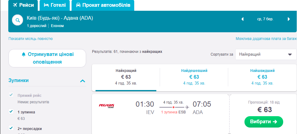– Київ – Адана 7 Березня 63 Євро http://bit.ly/2CYzzE7