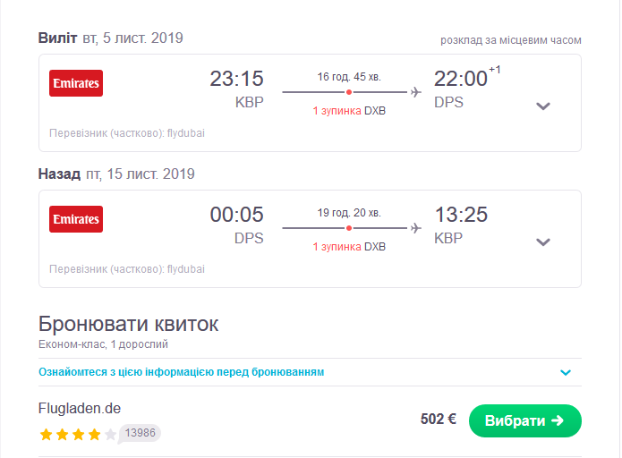 FlyDubai та Emirates проводять спільний розпродаж на перельоти до Азії з України. Нічого суперцікавого немає, але Балі з Києва за 502 Євро варте уваги, якщо мати на увазі, що за 290 Євро можна забронювати Deluxe номер у ***** готелі з включеними сніданками!