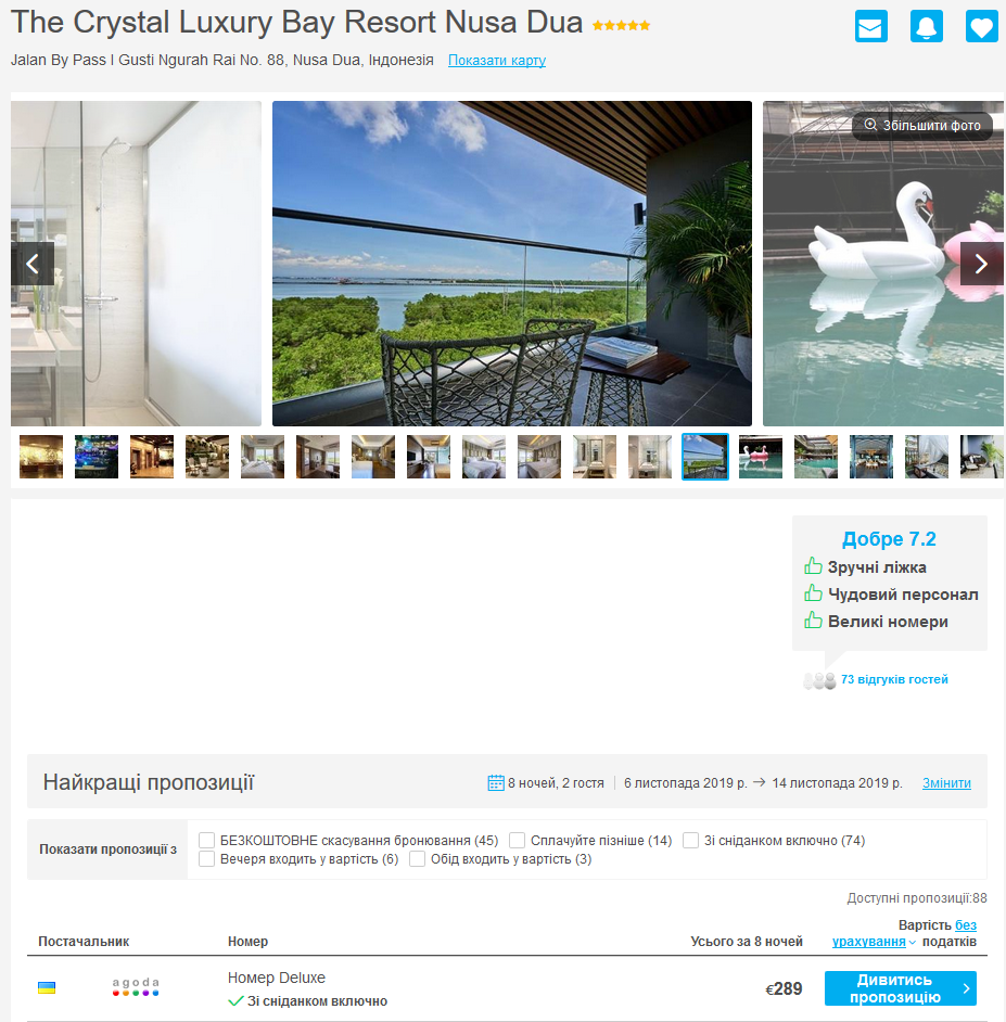 Радимо поселитись у чудовому ***** готелі The Crystal Luxury Bay Resort Nusa Dua – 290 Євро за 2хмісний номер на 8 ночей з включеними сніданками.