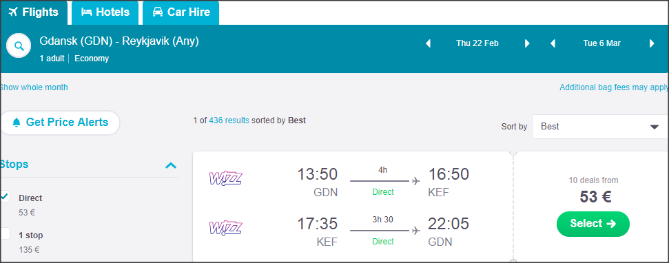 Гданськ – Рейк’явік – Гданськ 22 Лютого – 6 Березня – 53 Євро http://bit.ly/2ByRgrv