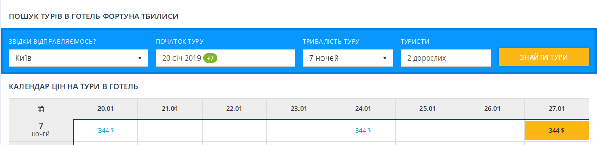 БРОНЮВАННЯ ЗА ЦИМ ПОСИЛАННЯМ. ( в полі “Початок Туру” вибираємо цікаву для себе дату і тиснемо “Знайти Тури”)