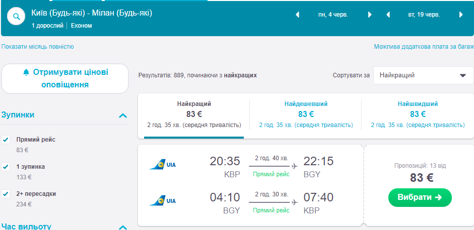 – Київ – Мілан – Київ 4-19 Червня 83 Євро https://bit.ly/2GyWNpp