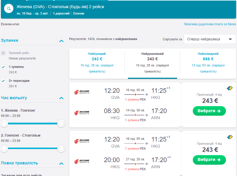 – Женева – Гонконг – Стокгольм 243 Євро https://bit.ly/2KUMQDZ