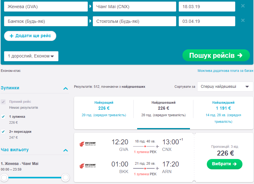 – Женева- Чіанг Май + Бангкок – Стокгольм 226 Євро https://bit.ly/2tYZbxq