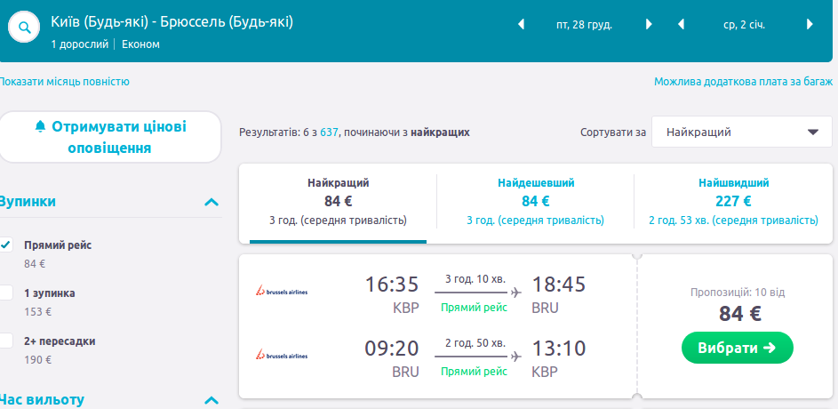 Назва авіакомпанії: Brussels Airlines ( в ціні лише ручний багаж).