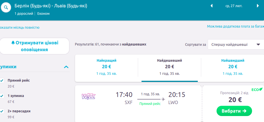 – Берлін – Львів 27 Лютого 20 Євро http://bit.ly/2EmUcwg
