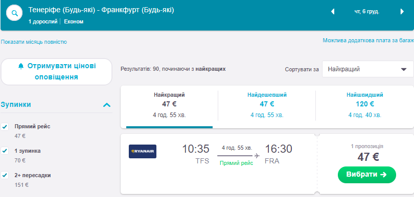 – Тенерифе – Франкфурт 6 Грудня 47 Євро https://bit.ly/2O6kEwK
