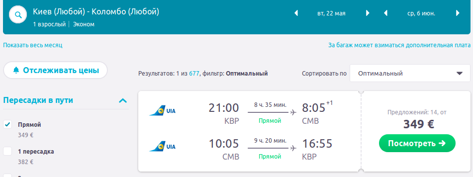 Знову з’явилась хороша пропозиція на прямий переліт до Коломбо з багажем, харчуванням та зручними годинами вильоту!