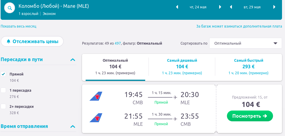 З Коломбо до Мали квитки в дві сторони коштуватимуть 104 Євро. Приклад бронювання на 24-29 Травня https://bit.ly/2IHRIHS