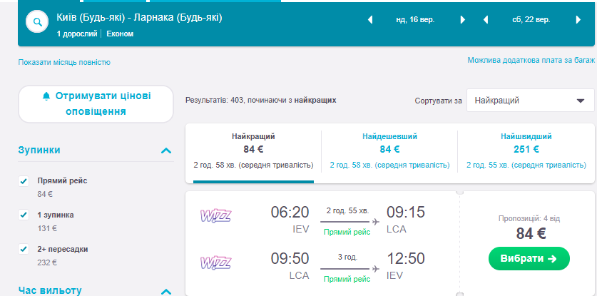 – Київ – Ларнака – Київ 16-22 Вересня 84 Євро https://bit.ly/2Lw5tPR