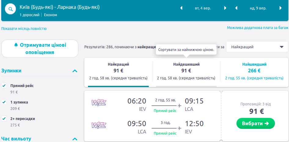 – Київ – Ларнака – Київ 2-8 Вересня 91 Євро http://bit.ly/2KLDU0s