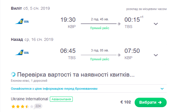 – Київ – Тбілісі – Київ 5-16 Січня 102 Євро (МАУ) https://bit.ly/2L15jfB