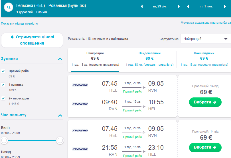 Переліт з Києва в Хельсінкі обійдеться всього у 80 Євро, а переліт з Хельсінкі до Рованіємі – 70 Євро.