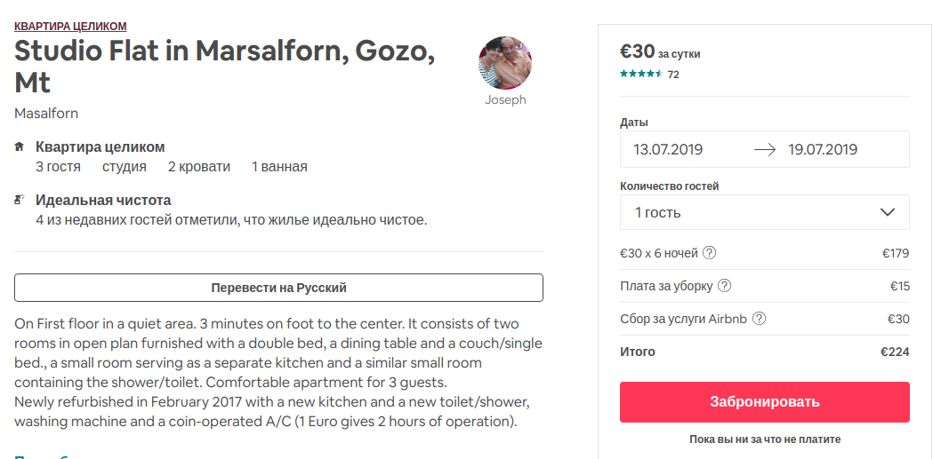 На 13-19 липня є чудовий дешевий варіант на AirBnb – 30 Євро за добу. Власна студія з хорошими умовами та 72 позитивними відгуками. А якщо ви новачок на Airbnb, то при реєстрації через наше реф. посилання отримаєте знижку в 37 Євро!