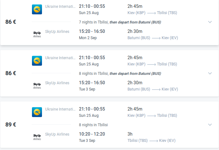 МАУ пропонує дешеві перельоти з Києва в Тбілісі, Sky Up – з Батумі в Київ, а ми пропонуємо поєднати це і в результаті отримати круту подорож за доступну ціну.
