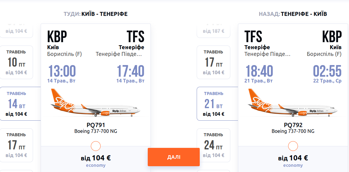 Ціни актуальні на перельоти у травні.