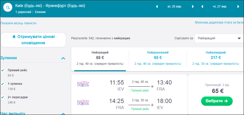 Кидаємо Вам пару прикладів, а решту варіантів з потрібним для Вас датами можна перевірити на офіційному сайті компанії.