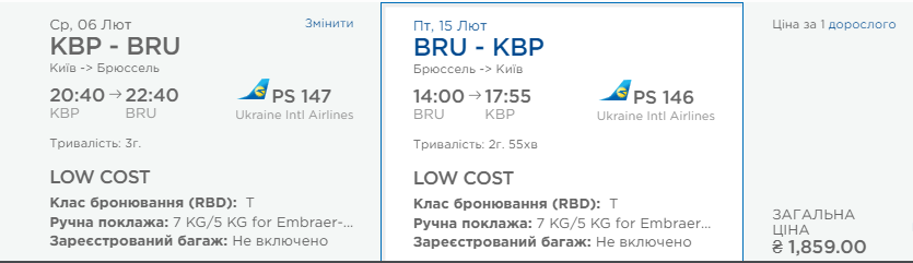 До Брюсселю вас доставить МАУ з тарифом “Lowcost” по ціні 57 Євро в 2 сторони. Квитки шукайте на офіційному сайті авіакомпанії.