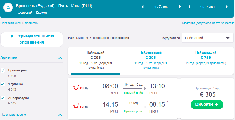 У туроператора TUIFly є дуже хороші ціни на перельоти до Домінікани та Занзібару на “Last Minute” та раннє бронювання. Описувати “Last Minute” немає сенсу, так як дістатись до Бельгії в найближчі дні обійдеться +- в ті ж кошти, що і переліт з Бельгії до Пунта Кани чи Занзібару, а от перельоти в лютому 2019 року варті уваги.