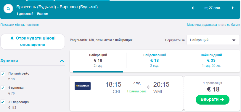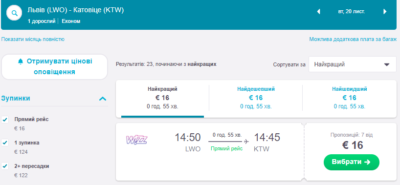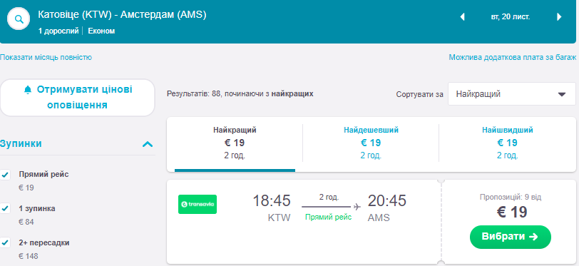 Спочатку летимо до Катовіце та зразу ж за декілька годин летимо з Катовіце в Амстердам. Назад повертаємось з Брюсселю через Варшаву ( Модлін) з нічною стиковкою.