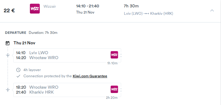 Знайшли невеликий лайфхак – між рейсами Львів-Вроцлав та Вроцлав-Харків є 4х годинна стиковка, а це означає, що ми спокійно можемо літати зі Львова в Харків через Вроцлав!