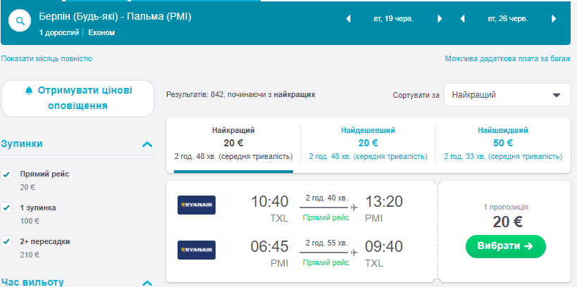 Ryanair збожеволів і практично на все літо продає квитки між Берліном і Пальма де Майорка всього за 10 Євро!