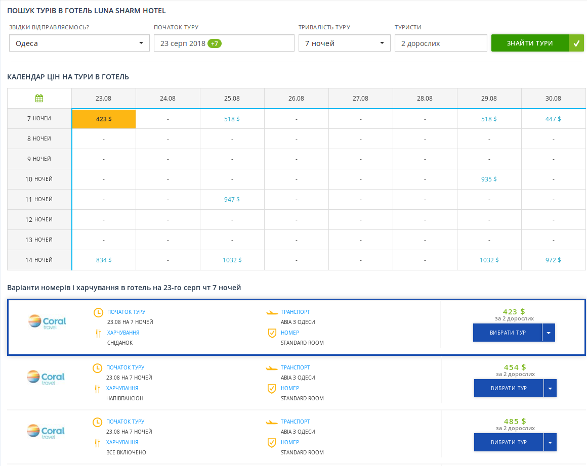 В ціну включено: переліт в дві сторони з багажем з Одеси до Шарм ель Шейху, трансфер до готелю, медичне страхування.