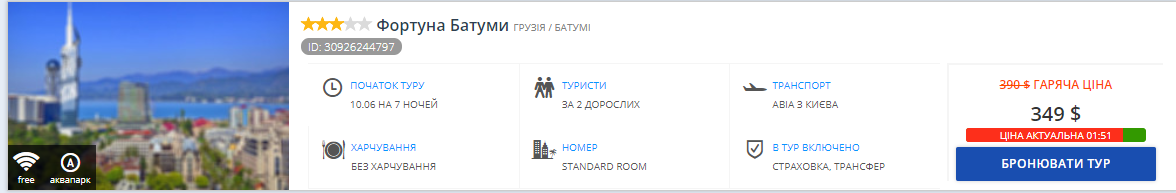 В ціну включено: переліт в дві сторони з багажем з Києва до Батумі/Тивату/Тірани, трансфер до готелю, медичне страхування.