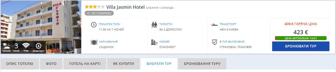 Усі ціни вказано за 2 особи з вильотом з Києва.