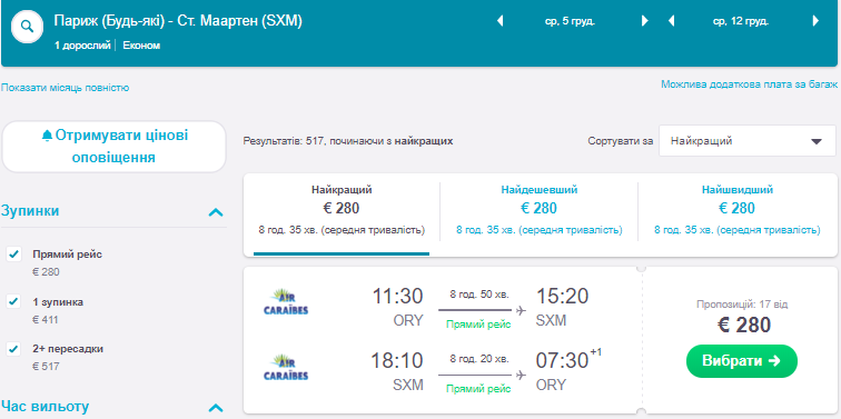 – Париж – Сент Мартін – Париж 5-12 Грудня 280 Євро https://bit.ly/2C8C4Xz