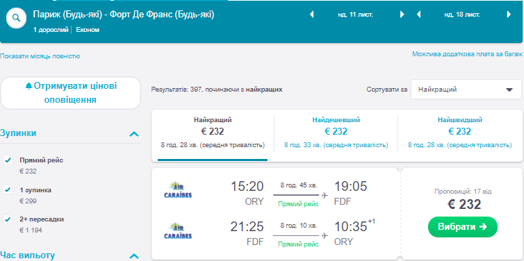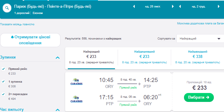 – Париж – Форт де Франс – Париж 18-24 Листопада 232 Євро https://bit.ly/2NIeKRF