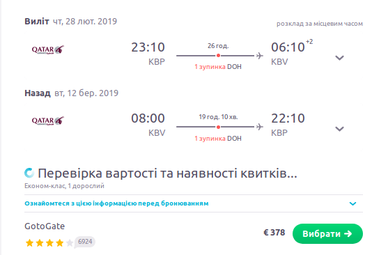 Приваблива ціна на від ***** авіакомпанії з шикарним сервісом на борту.