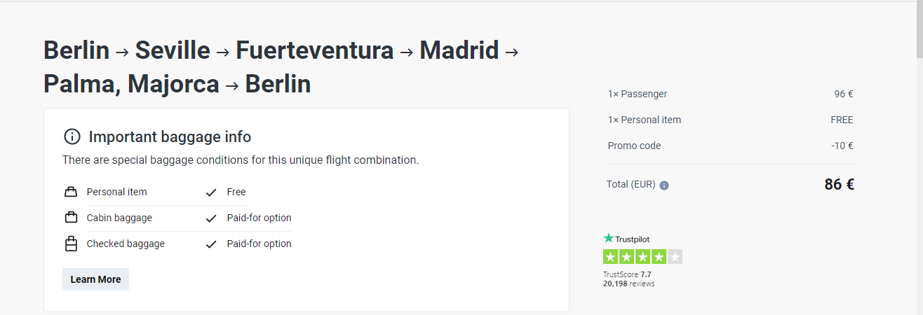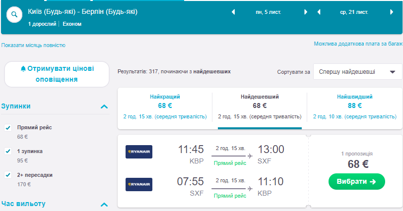 Назва авіакомпанії: Ryanair ( в ціні включений лише ручний багаж).