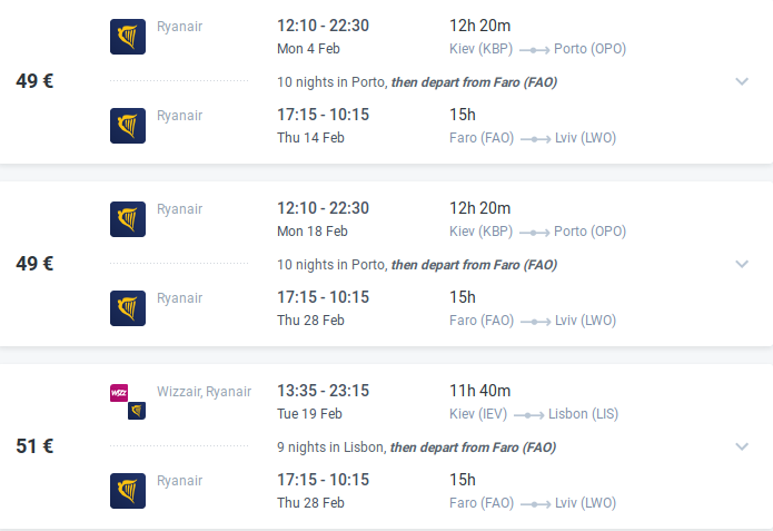 Переглянути усі доступні варіанти з перебуванням у Португалії 4-7 днів можна за цим посиланням.