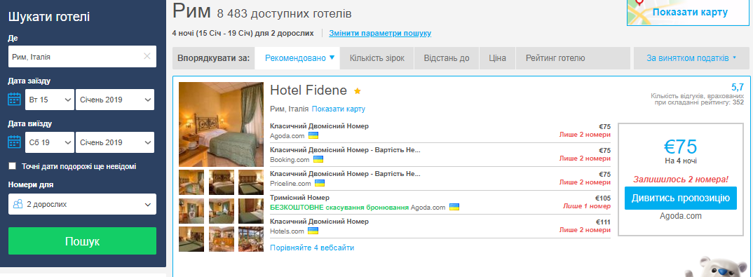 - Hotelscombined - пошуковик, який знаходить найдешевше житло серед усіх сайтів для бронювання житла в готелях/хостелах/апаратментах.