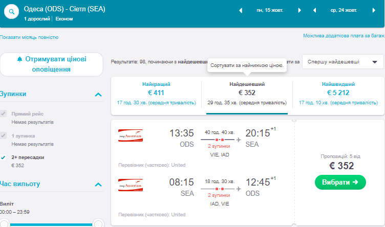 – Одеса- Сієтл – Одеса 15-24 Жовтня 352 Євро https://bit.ly/2z6n7E0