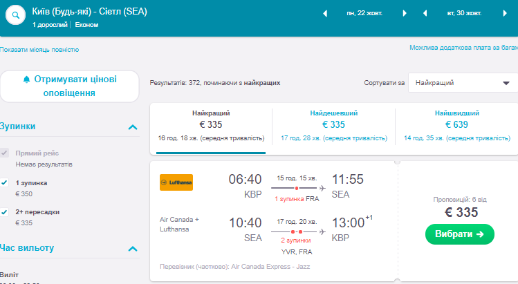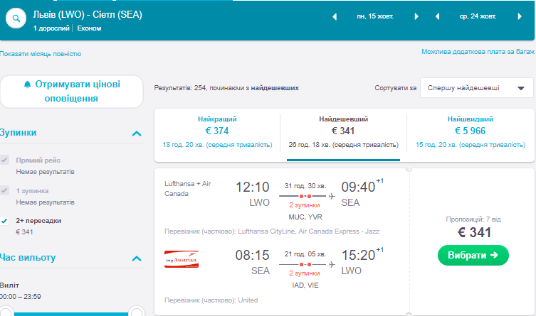 Ціновий рекорд на переліт з України до Сієтлу!
