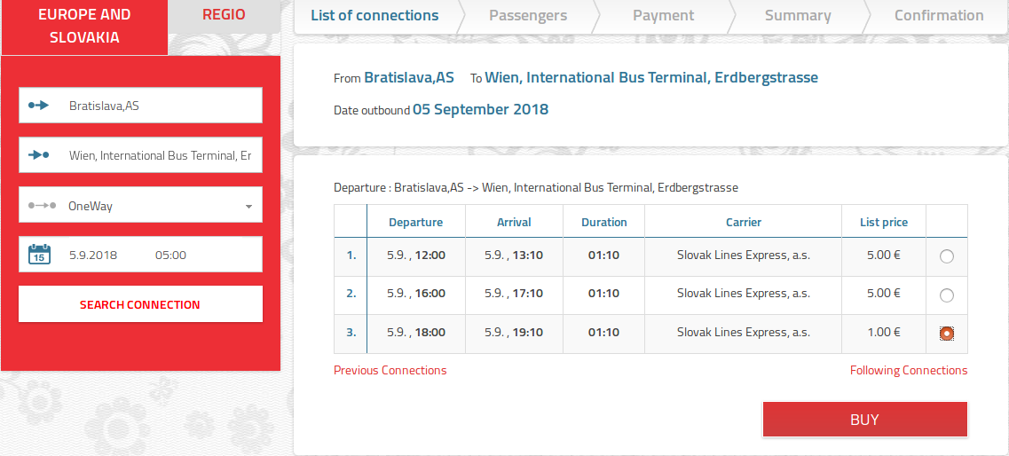 З Братислави до Відня квиток за 1 Євро в одну сторону знайдете на SlovakLines (квитків на наші дати на даний момент ще немає у продажі).