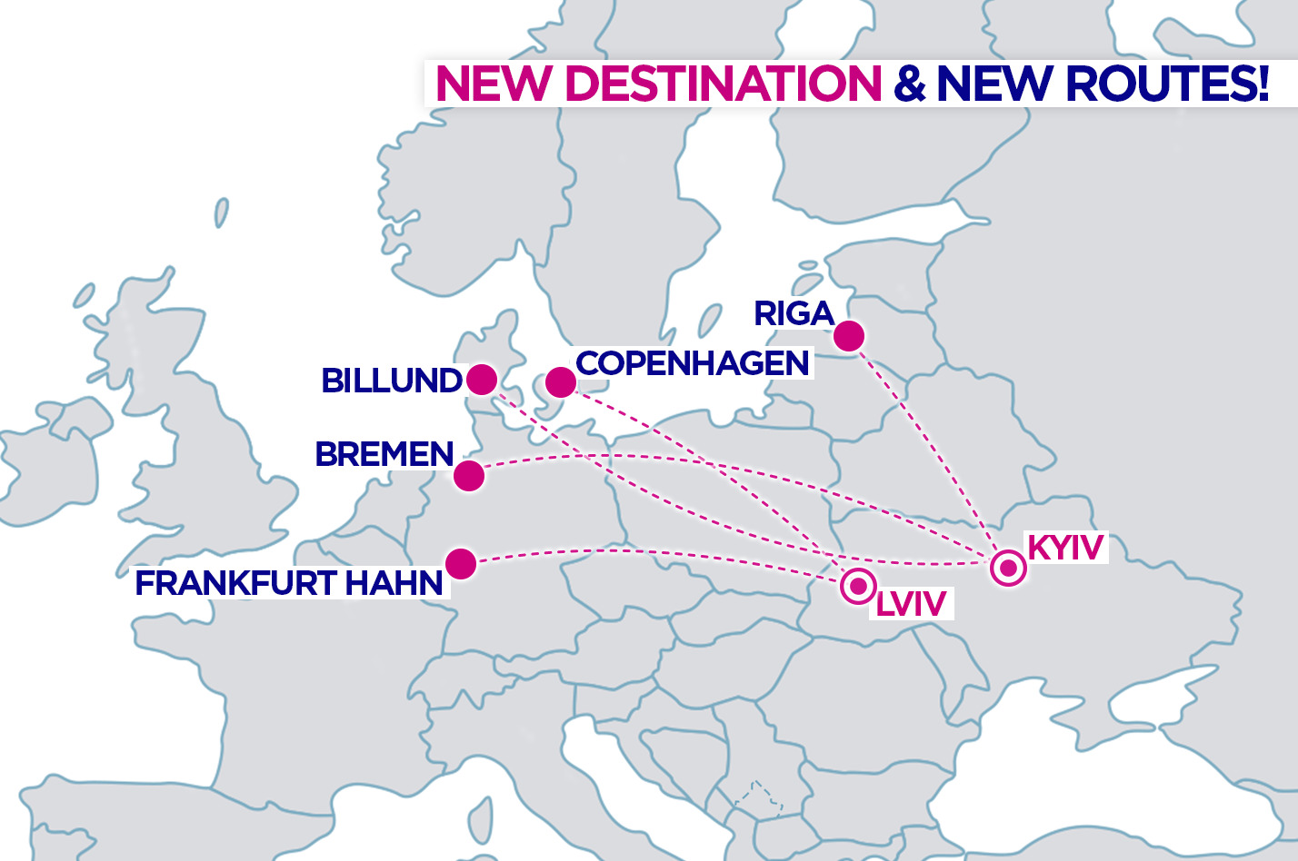 Полетимо зі Львова до Копенгагена та Франфурт(Хан), а з Києва до Бремену, Риги та Біллунда!